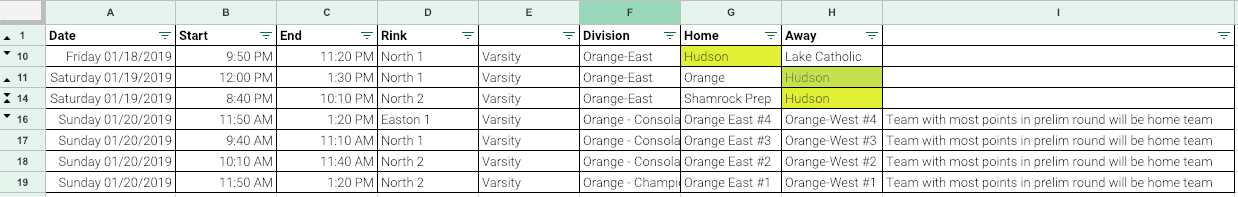 East Teams: Hudson, Lake Catholic, Olentangy Orange, Shamrock Prep. Hockey Club